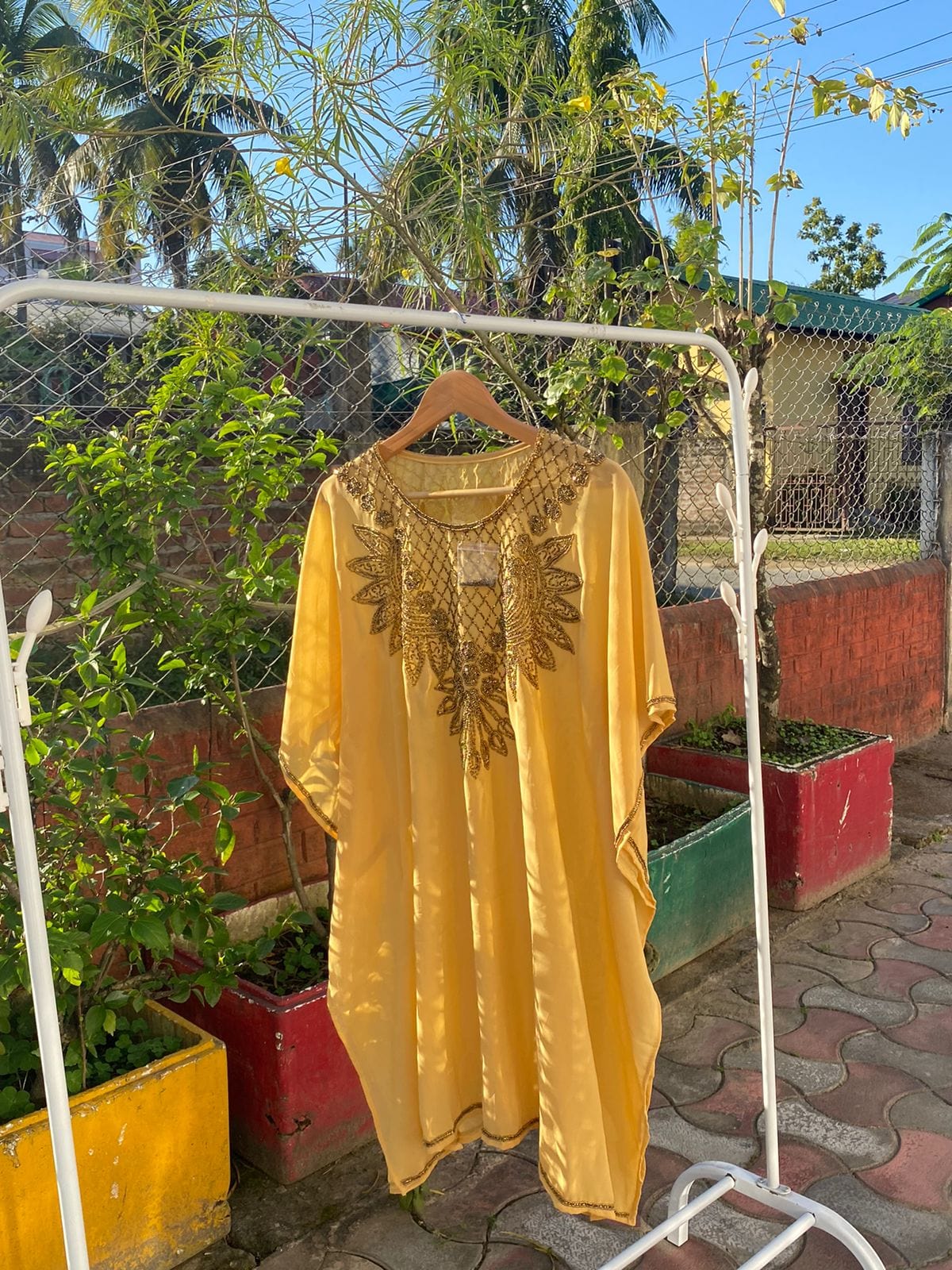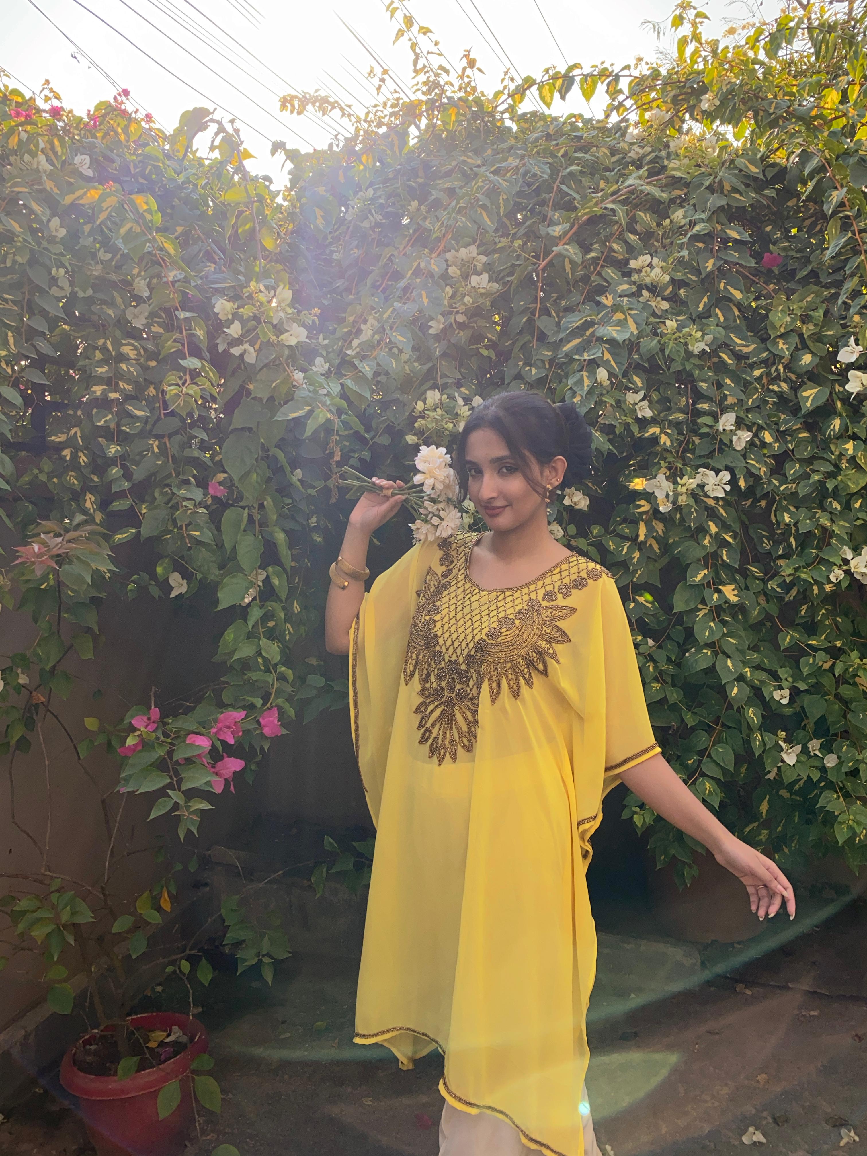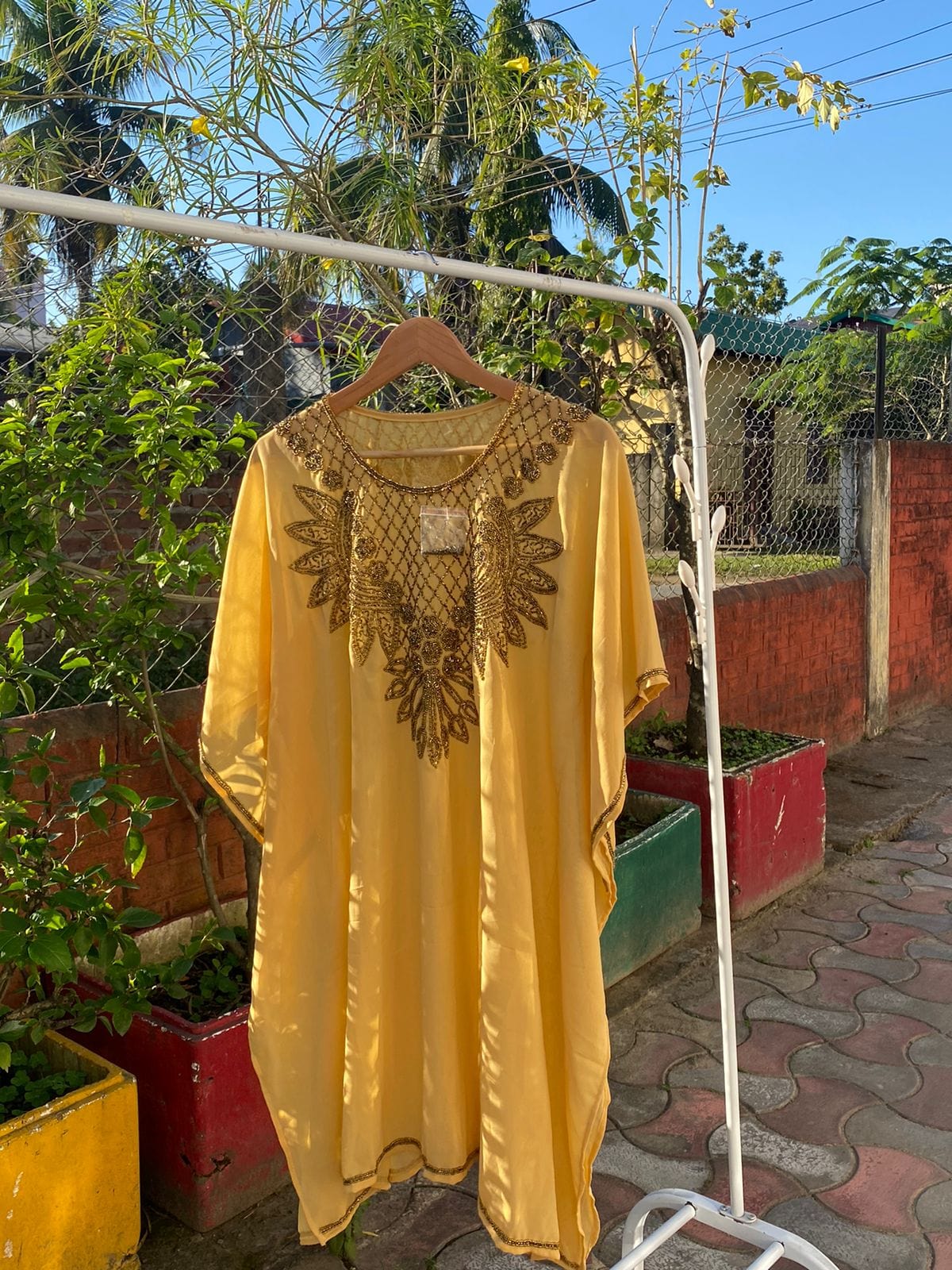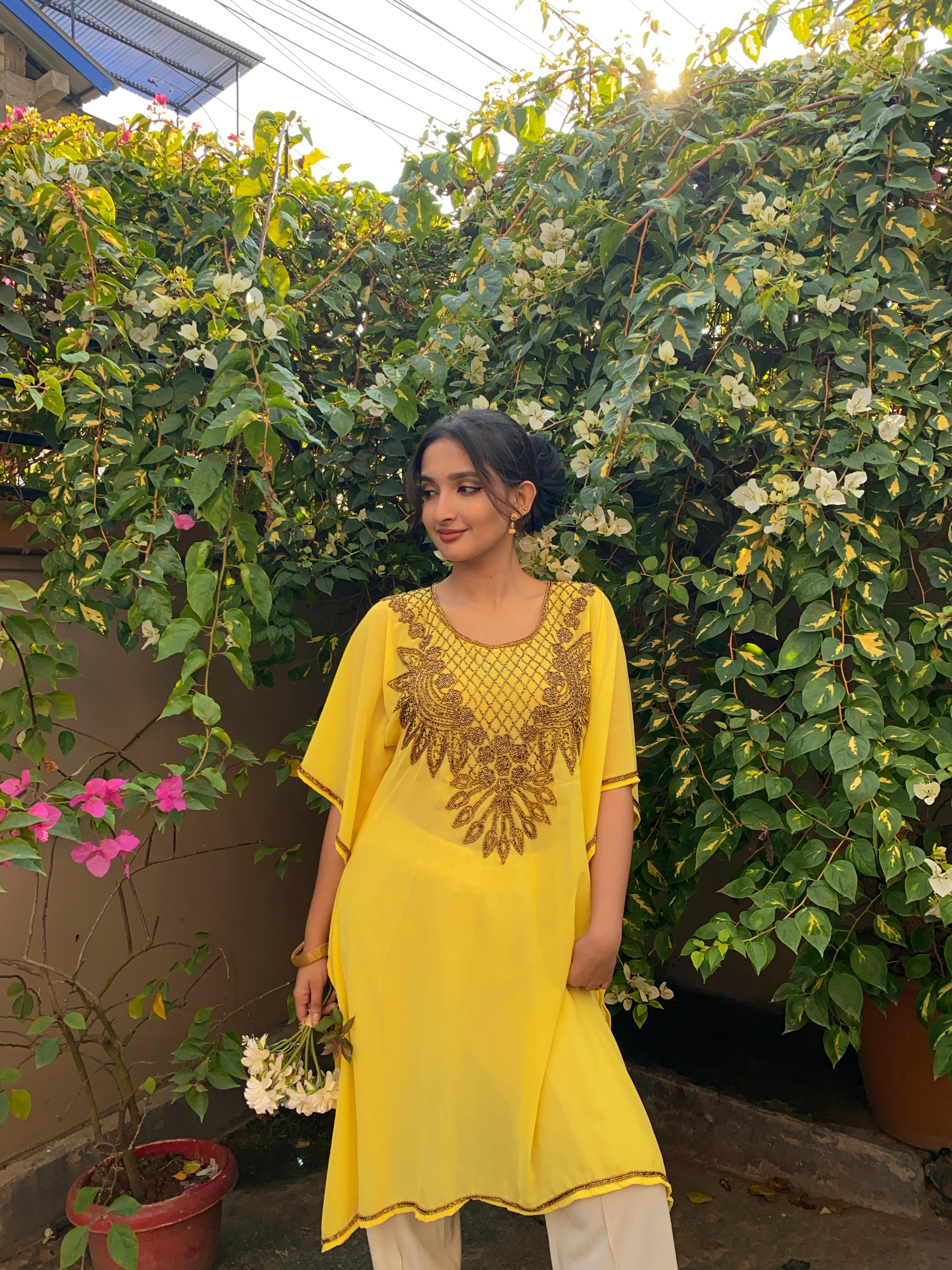 Slip into our stunning kaftan, perfect for any occasion! Whether you're attending a any traditional gathering or just running errands, this free-size (XS-L) beauty adapts to your style. Pair with heels or sneakers - the choice is yours!!