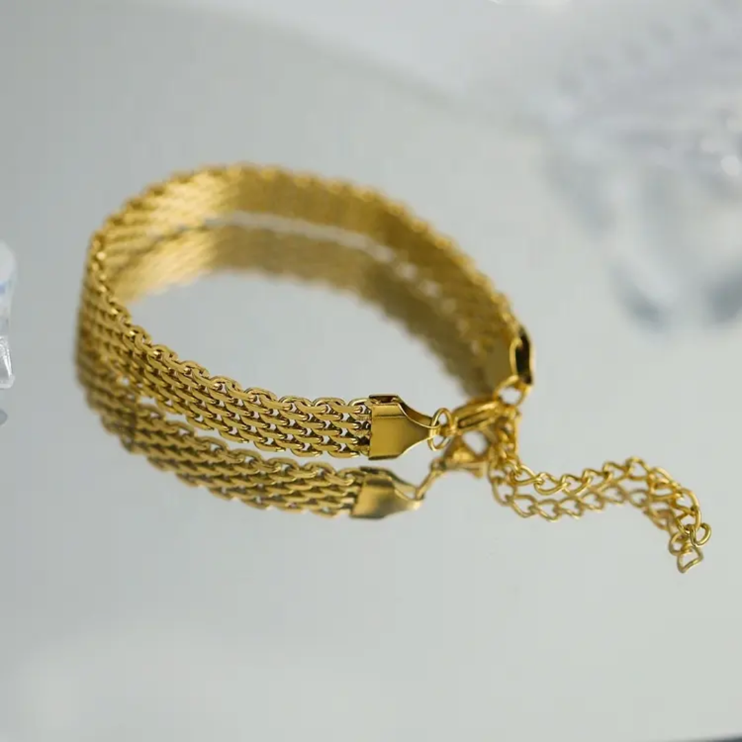 This woven gold-toned bracelet hugs your wrist with effortless charm — no sparkle, no noise, just quiet confidence.