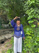 A statement in itself — this electric blue sheer top with bell sleeves and hand-embroidered detailing is made to steal the spotlight. Inspired by retro glam and Zeenat’s effortless boldness, Bijli is the kind of top that lights up a room the moment you walk in.