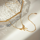 For the girls who flirt with their style and mean every bow they wear. The Tie Me Softly Necklace features a delicate ribbon-inspired charm on a fine beaded chain, ending in a soft lariat drop with a glimmering teardrop crystal.