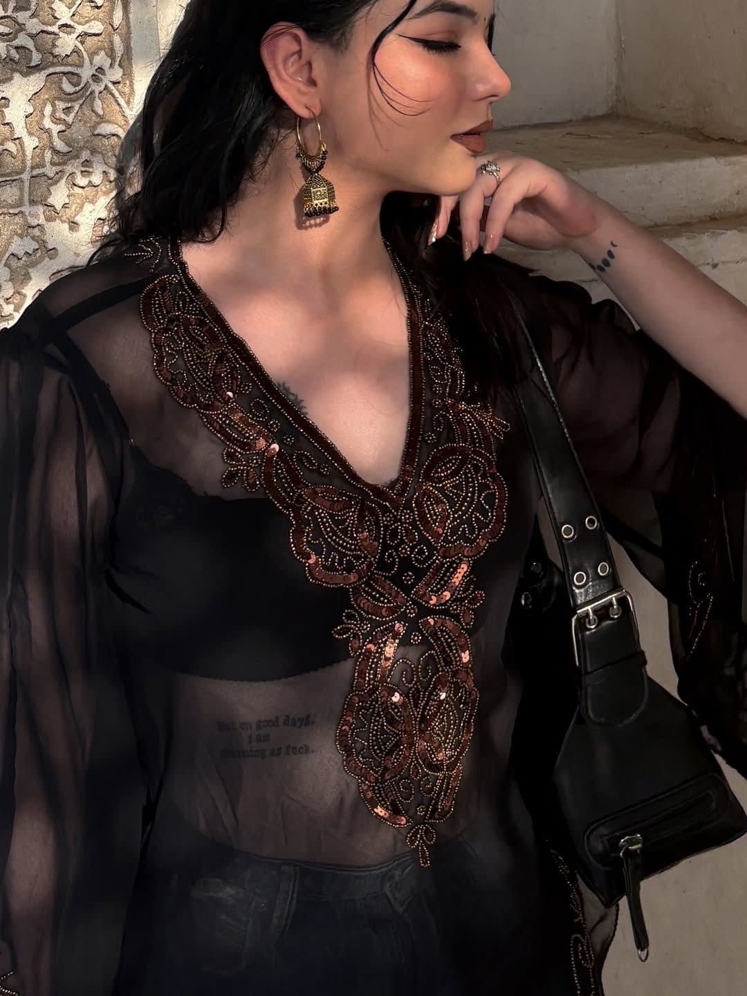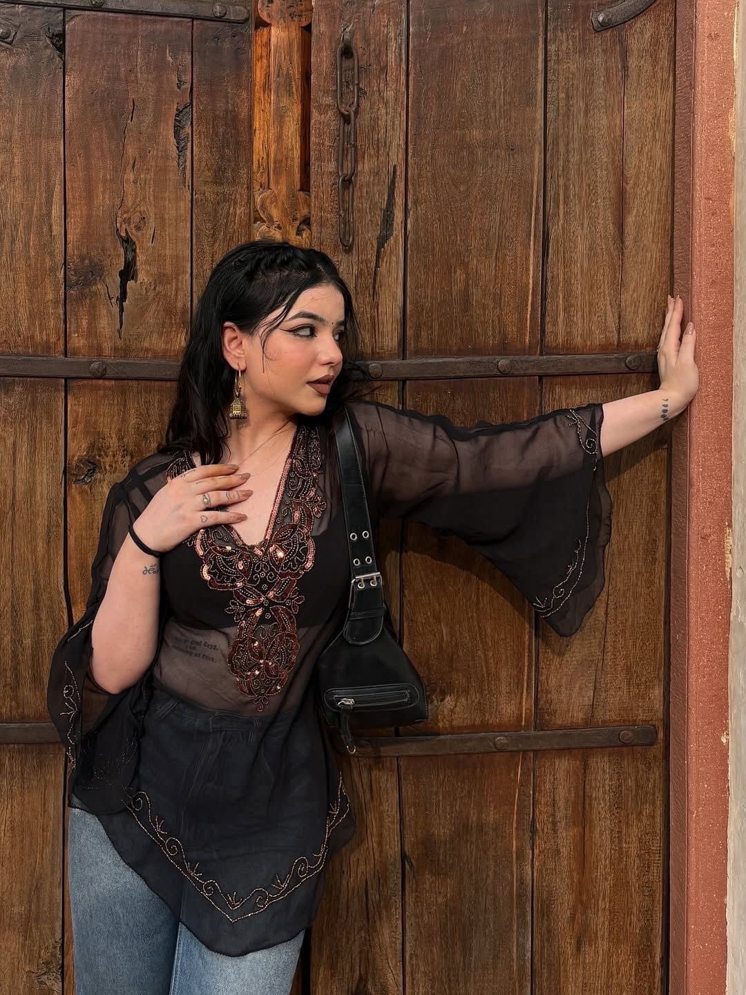 Zeenat Aman Short Top - Black