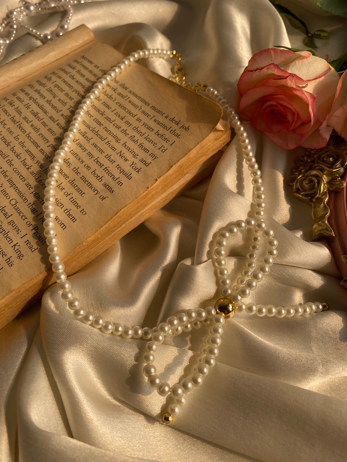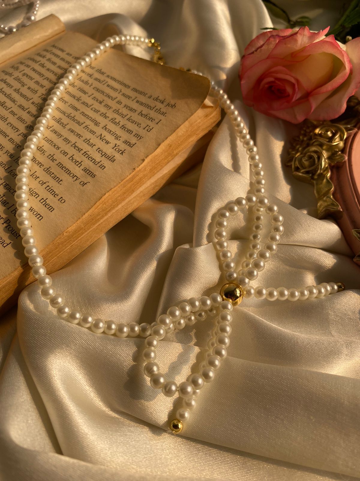Dainty Bow Pearl Neckchain
