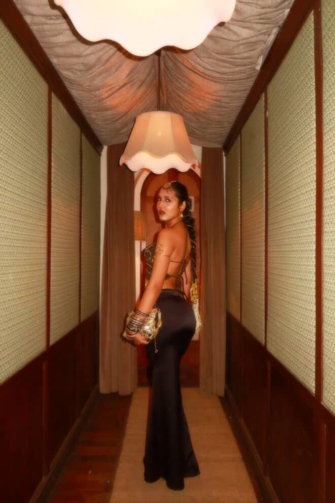 Lightweight, flattering, and made to glow under warm lights, this piece sits beautifully on the body and elevates even the simplest pairing.