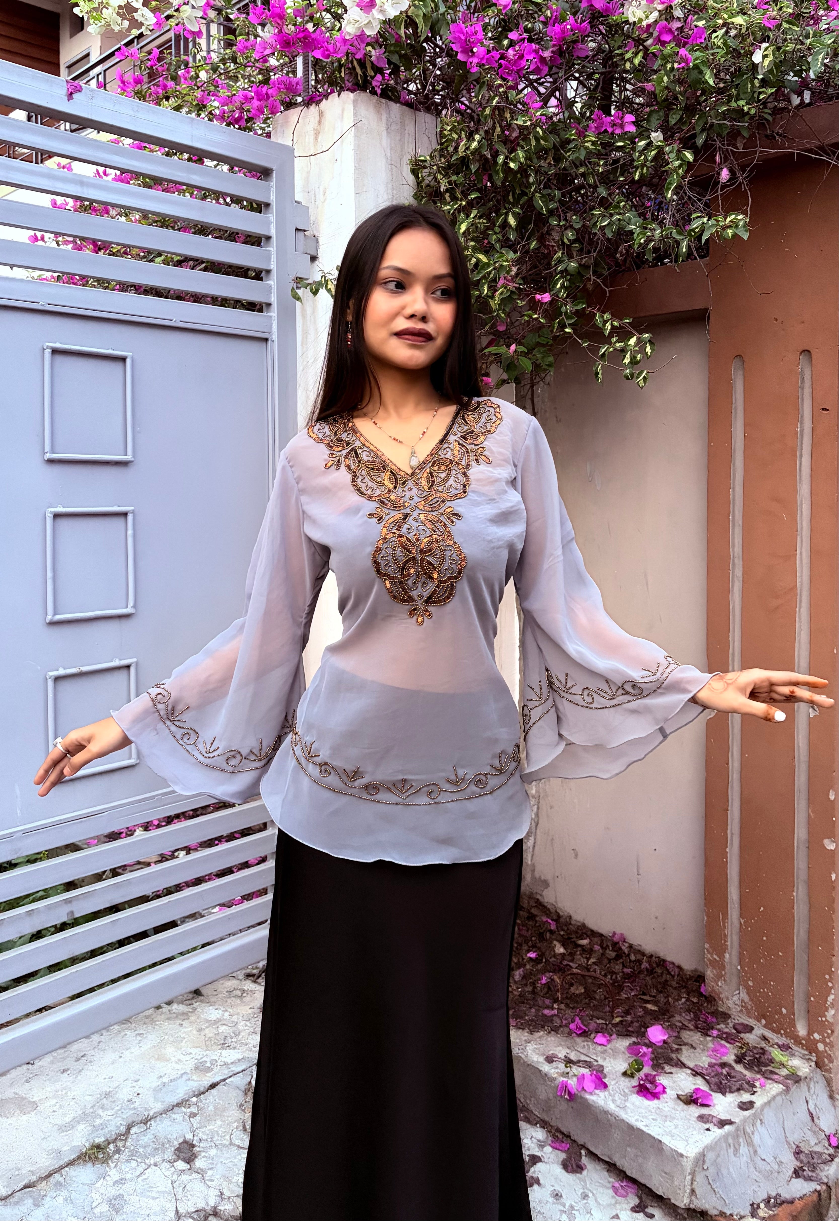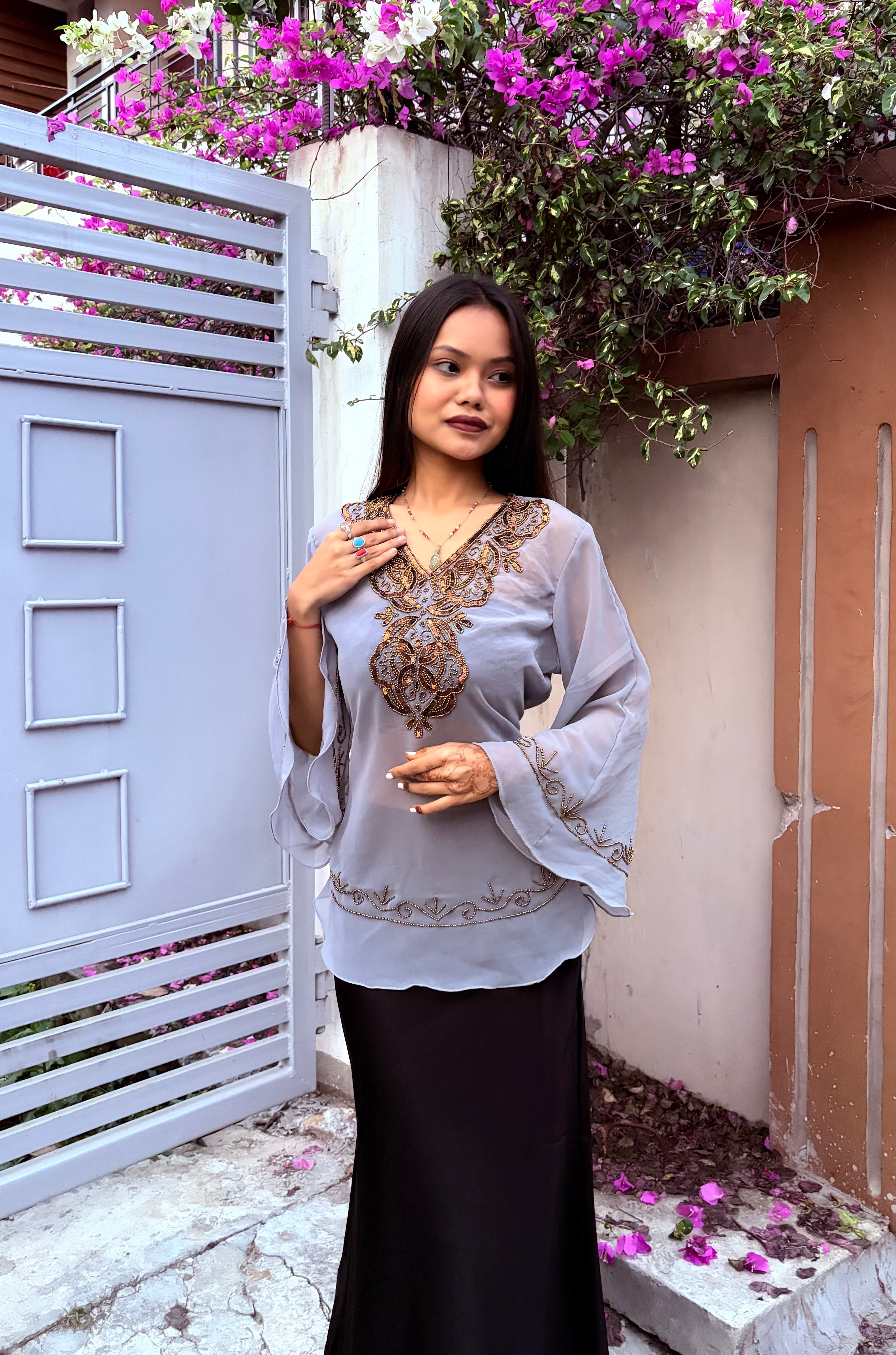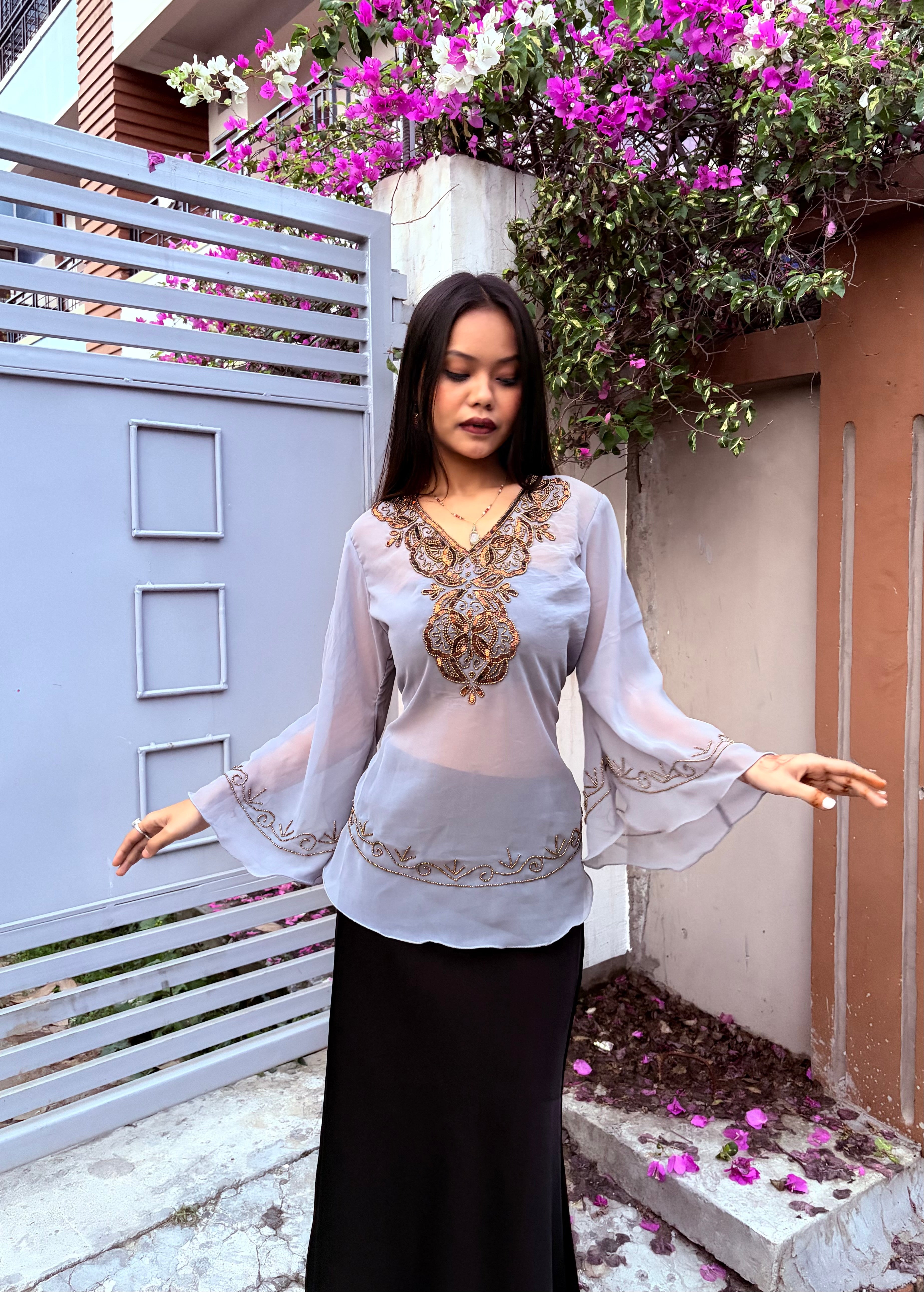 Zeenat Aman Short Top - Grey