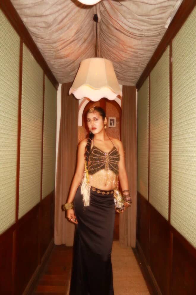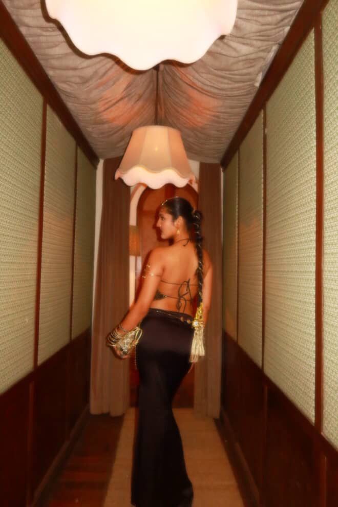 Lightweight, flattering, and made to glow under warm lights, this piece sits beautifully on the body and elevates even the simplest pairing.