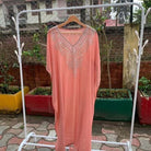 Alya Long Zari Work Kaftan(Coral Pink)