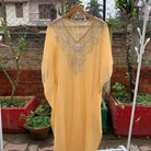 Alya Zari Work Short Kaftan - Yellow