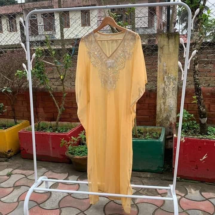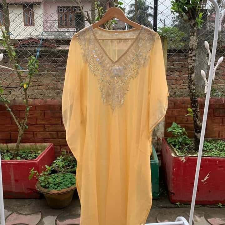 Our Kaftan comes in a beautiful shade. The Kaftans have a gorgeous embroidery done by our Indian Craftsmen. You can wear these Kaftans for a casual day out or maybe wear it as your birthday fit!! There's no one way to style these Kaftans✨