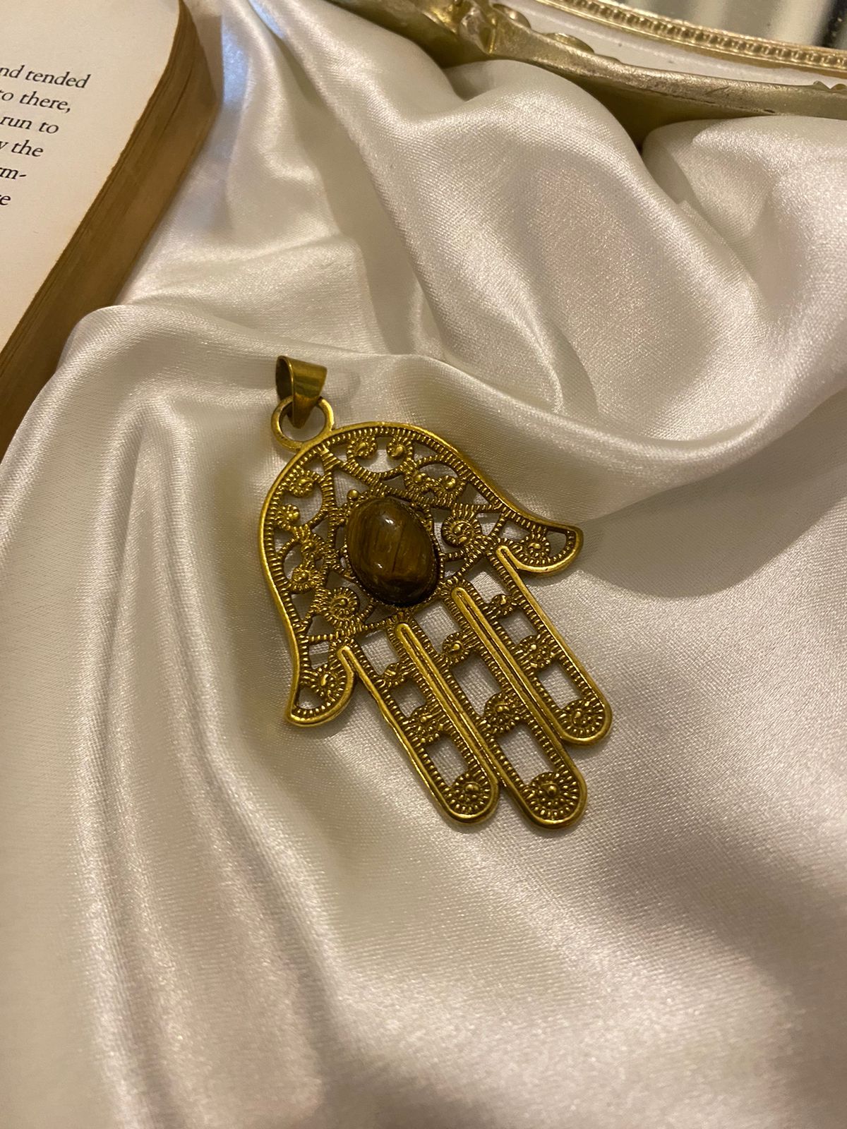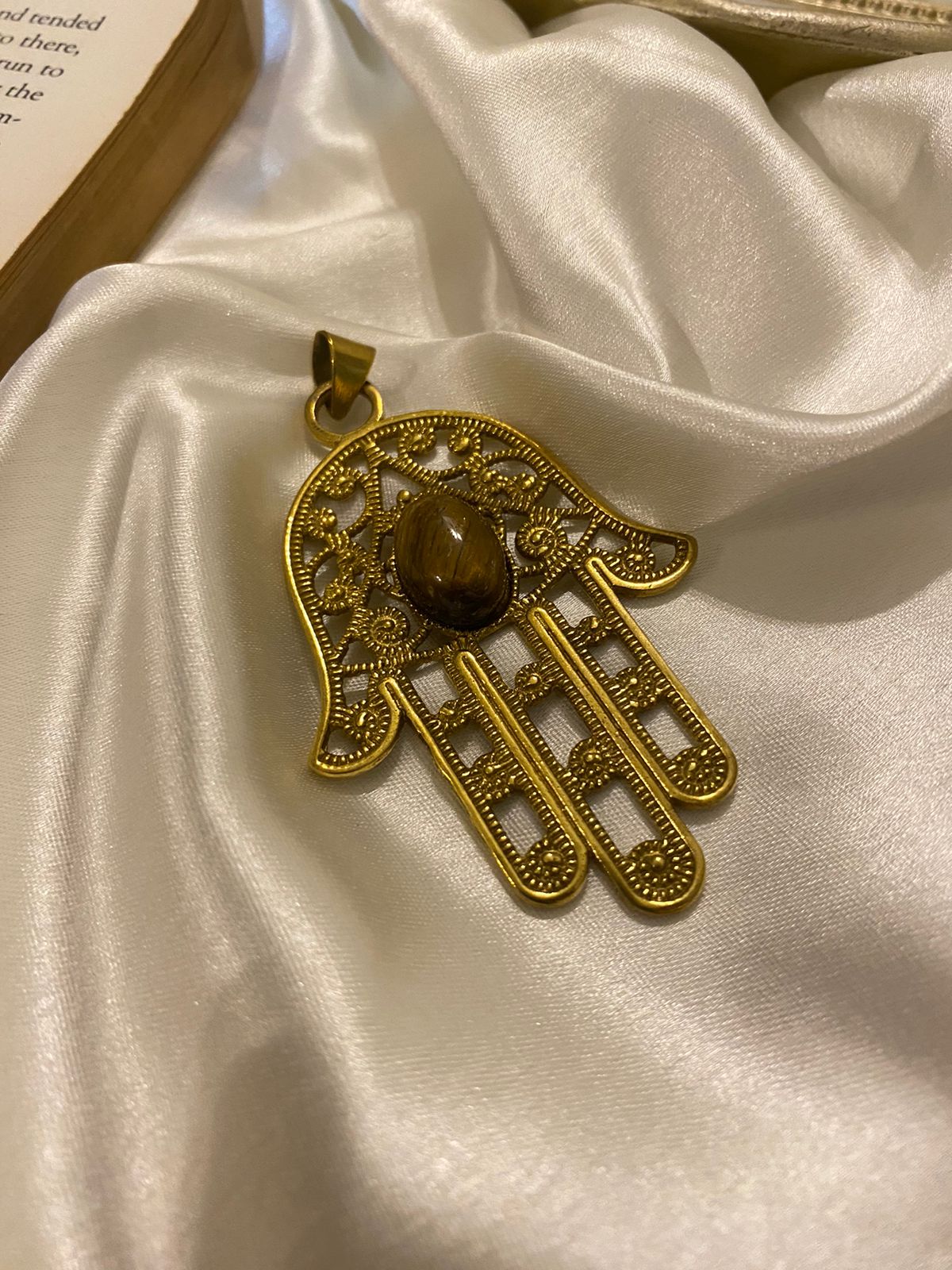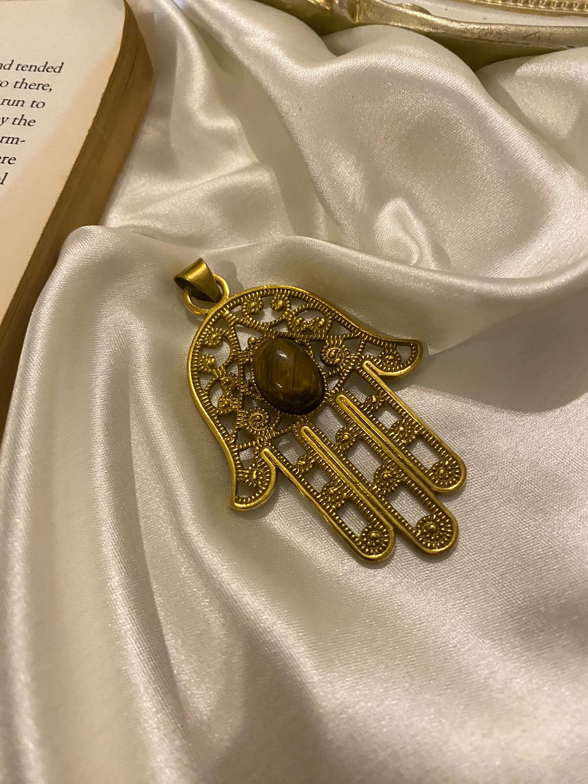 Hamsa Brass Collectible with Tiger Eye (comes with Neckchain)
