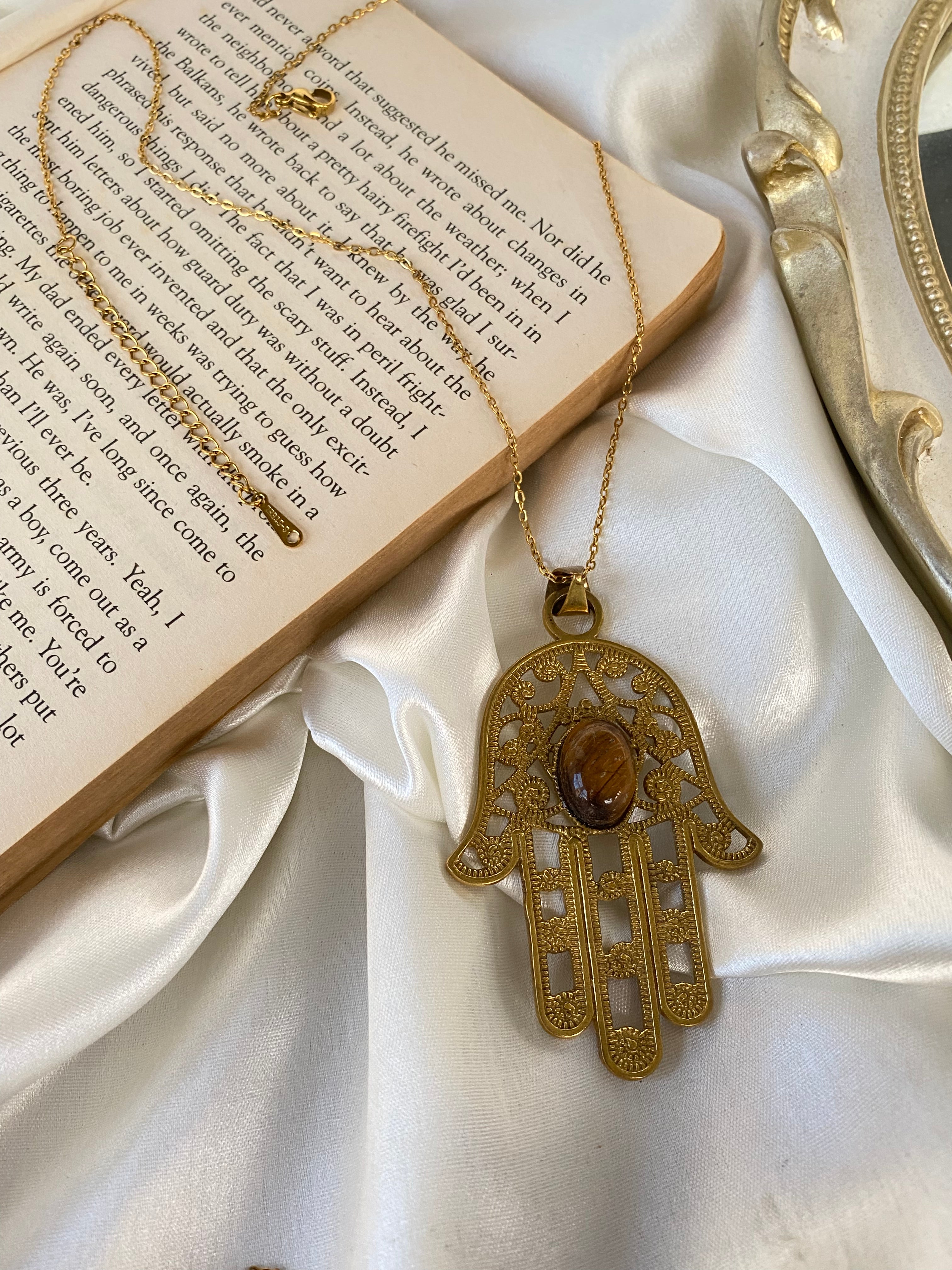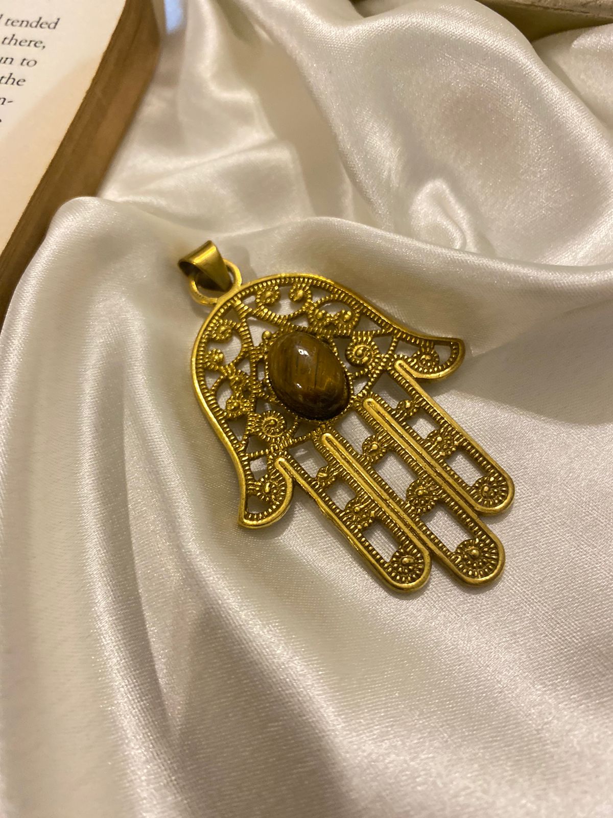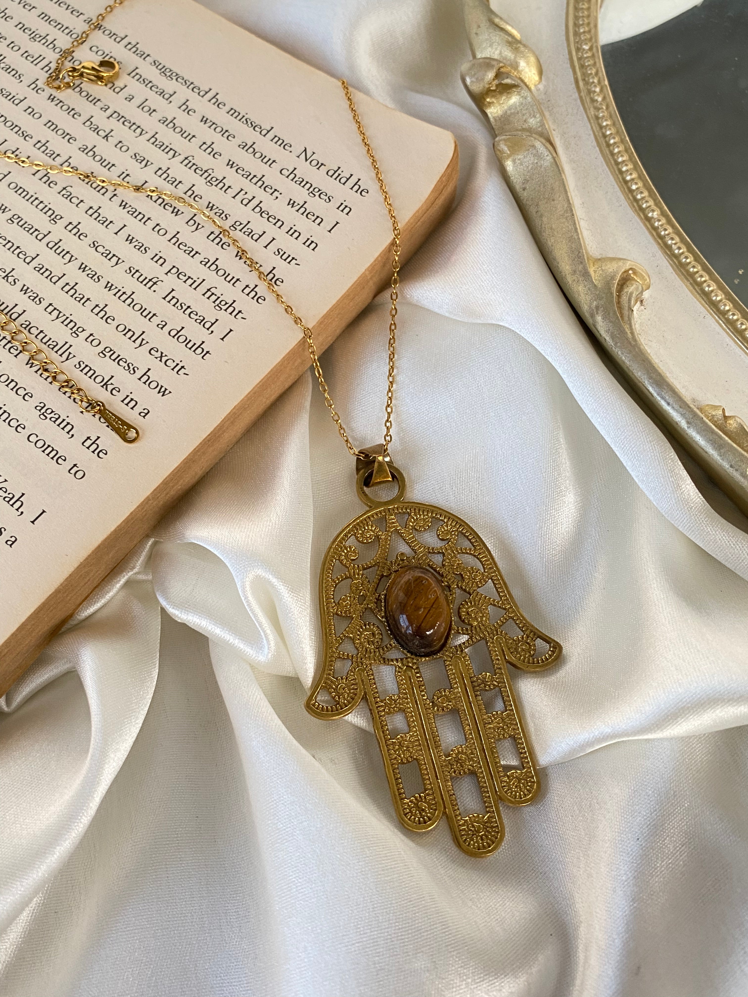 Hamsa Brass Collectible with Tiger Eye (comes with Neckchain)